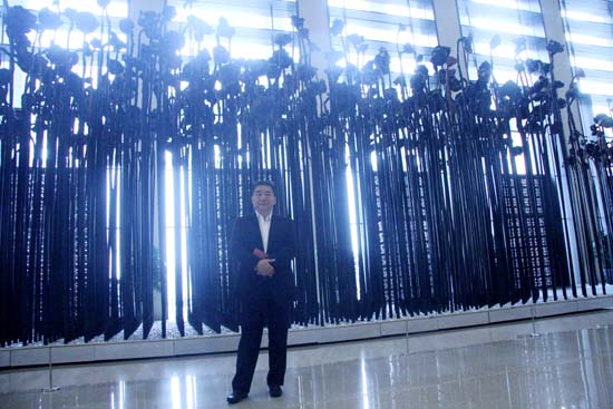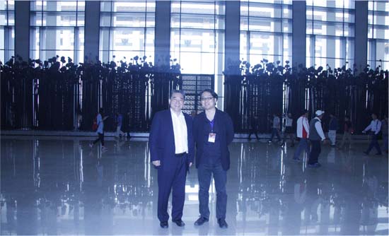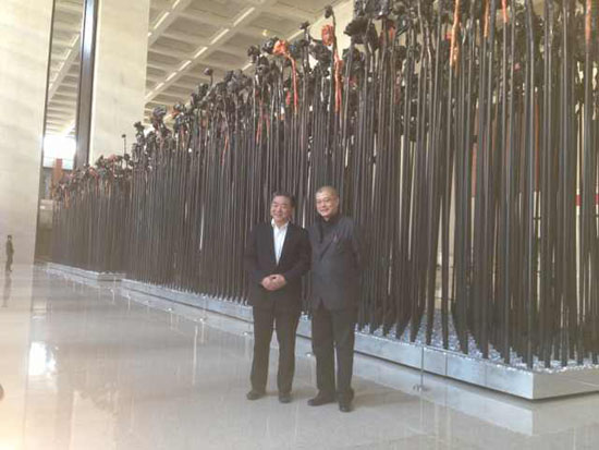 孔令發(fā)董事長和許江院長在中國國家博物館里“共生葵陣”旁合影