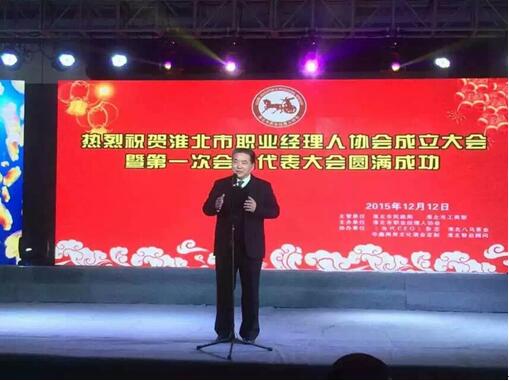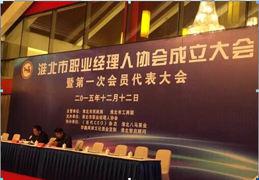 2015年12月12日,淮北市職業(yè)經理人協(xié)會成立大會在口子國際大酒店隆重舉行,國家及安徽省職業(yè)經理人主管機構、淮北市政府領導、協(xié)會會員及各界工商人士近200人出席大會。與會代表在聽取了協(xié)會籌備組作籌備工作報告后,審議通過了《淮北市職業(yè)經理人協(xié)會章程》和《選舉辦法》,審議通過協(xié)會第一屆理事會、監(jiān)事會名單,選舉產生會長、副會長、秘書長人選,集團公司董事長孔令發(fā)先生榮譽當選為淮北市職業(yè)經理人協(xié)會會長。