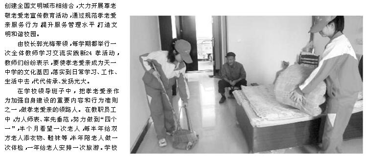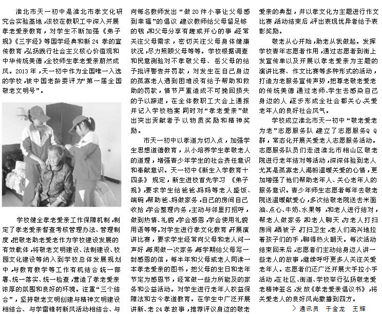 轉淮北晨刊:天一初中孝老愛親彰顯文明風采