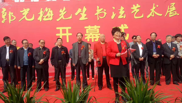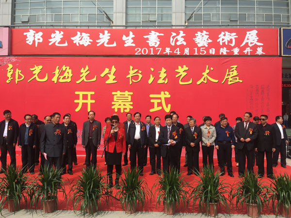 中國毛體書法家協(xié)會(huì)理事,中國毛體書法家協(xié)會(huì)安徽分會(huì)副主席、開渠書畫院院長、中國毛體書法家協(xié)會(huì)淮北分會(huì)主席郭光梅先生書法藝術(shù)展于2017415日上午9點(diǎn)30分在淮北體育場(chǎng)東門淮北市體育中心展廳隆重舉行開幕式。市人大常委會(huì)常務(wù)副主任方宗澤,市委常委、市委宣傳部部長顧文,市人大常委會(huì)副主任楊彥穎、余敏輝,市政協(xié)副主席蔣守彬、李彥秋、錢丹嬰,市人大常委會(huì)秘書長陳朝祥,市政府秘書長宋偉出席開幕式。