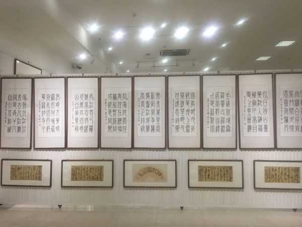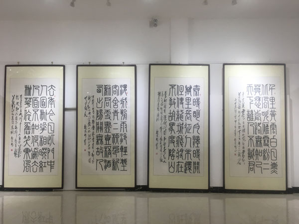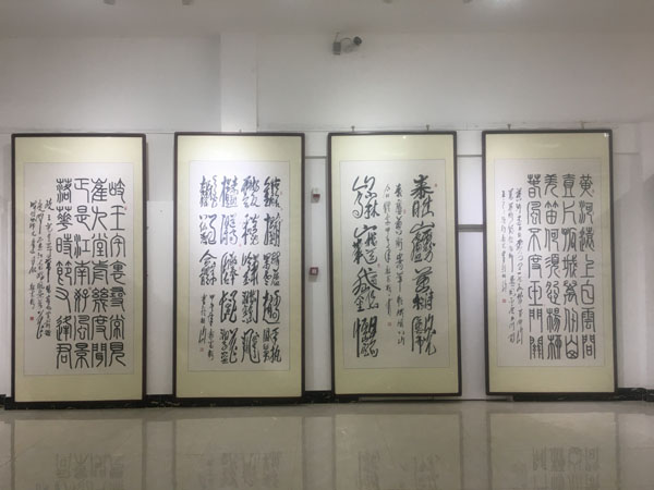 此次展覽由中國毛體書法家協(xié)會(huì)、中國毛體書法家協(xié)會(huì)安徽分會(huì)、天象集團(tuán)有限責(zé)任公司聯(lián)合主辦,共展出了郭光梅183幅精選作品,包含了毛體、隸書等8種字體,展覽將持續(xù)到420日。