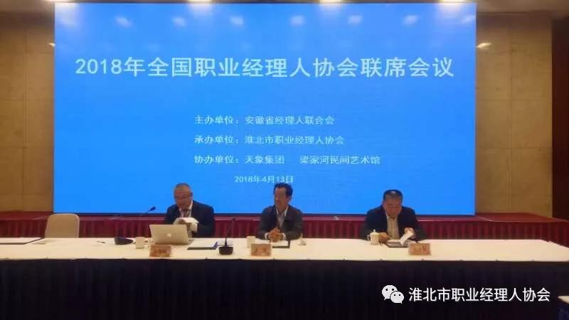 2018年全國職業(yè)經(jīng)理人協(xié)會(huì)聯(lián)席會(huì)議暨淮北市工商聯(lián)招商推介會(huì)于4月13日~14日在淮北市口子國際大酒店圓滿結(jié)束。本次會(huì)議是安徽省經(jīng)理人聯(lián)合會(huì)主辦、淮北市職業(yè)經(jīng)理人協(xié)會(huì)承辦、天象集團(tuán)協(xié)辦的全國性會(huì)議。淮北職業(yè)經(jīng)理人協(xié)會(huì)會(huì)長、天象集團(tuán)董事長孔令發(fā)出席會(huì)議并致辭。