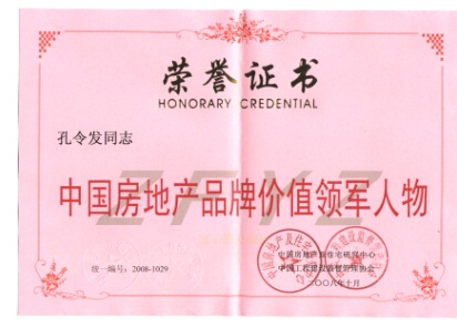 2008年孔令發(fā)董事長(zhǎng)獲評(píng)中國(guó)房地產(chǎn)品牌領(lǐng)軍人物