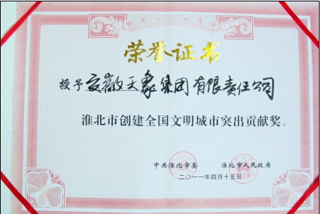 2011年淮北市創(chuàng)建全國(guó)文明城市突出貢獻(xiàn)獎(jiǎng)